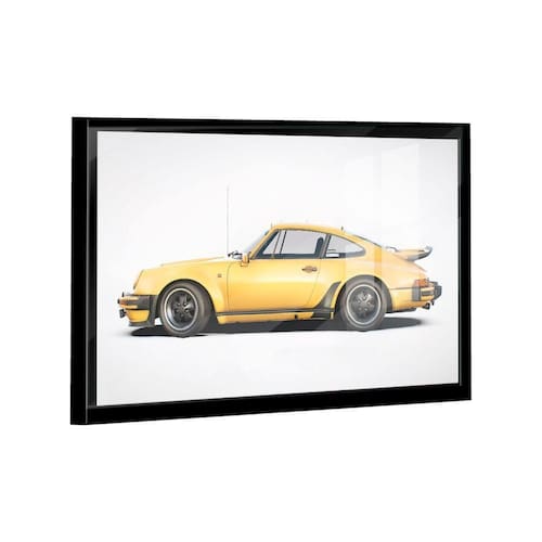 Quadro Porsche 911 Amarelo Lado -- BR ARTES Moldura Preta e Vidro - Ultra Grande 150x100 -