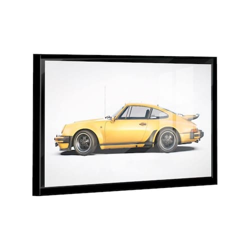 Quadro Porsche 911 Amarelo Lado -- BR ARTES Moldura Preta e Vidro - Gigante 180x105 -