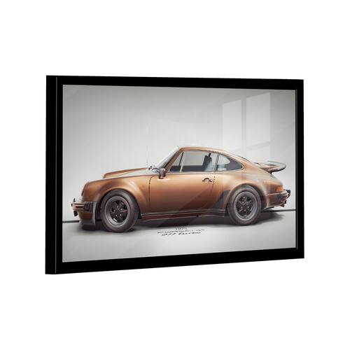 Quadro Porsche 911 Gold Lado -- BR ARTES Moldura Preta e Vidro - Grande 118x78 -