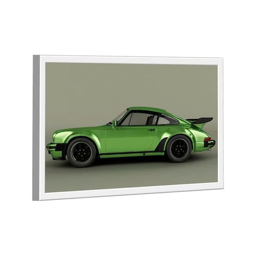 Quadro Porsche 911 Verde Metálico Lado -- BR ARTES Moldura Branca - Médio 84x54 -