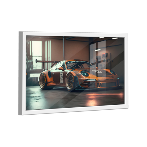 Quadro Porsche Gold -- BR ARTES Moldura Branca e Vidro - Médio 84x54 -