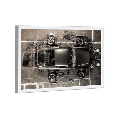 Quadro Porsche Reconstrução -- BR ARTES Moldura Branca - Gigante 180x105 -