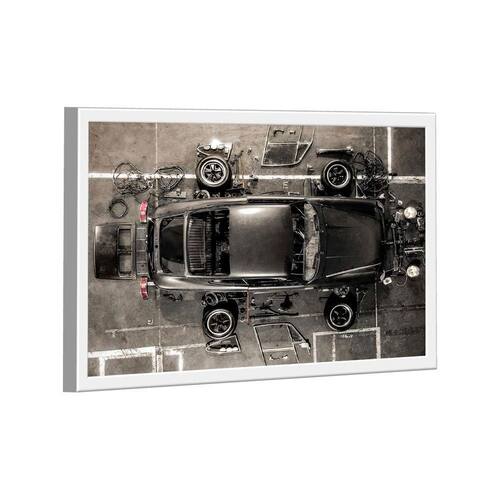 Quadro Porsche Reconstrução -- BR ARTES Moldura Branca - Médio 84x54 -