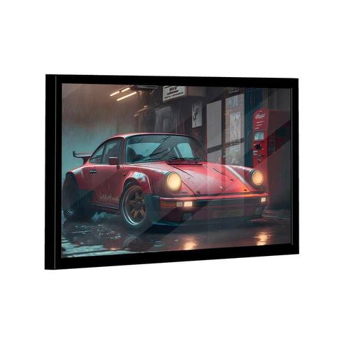 Quadro Porsche Vermelho -- BR ARTES Moldura Preta e Vidro - Ultra Grande 150x100 -