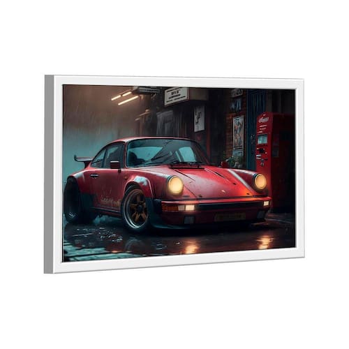 Quadro Porsche Vermelho -- BR ARTES Moldura Branca - Gigante 180x105 -