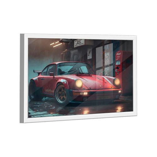 Quadro Porsche Vermelho -- BR ARTES Moldura Branca e Vidro - Pequeno 60x40 -