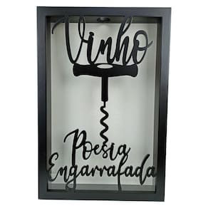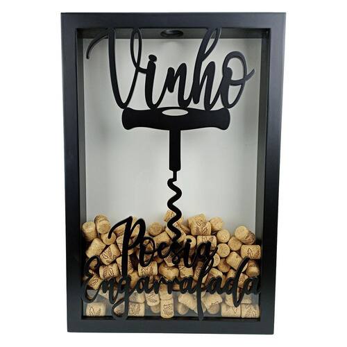 Quadro Porta Rolhas de Vinho - Poesia Engarrafada - 250un Preencha esse lindo quadro com rolhas de vinho ou espumante e tenha uma decoração única na sua casa. Além de ser uma peça indispensável no local onde você desfruta daquele bom vinho este quadro pode ser um excelente presente para surpreender um amigo a , Namorado a e familiares que apreciam um bom vinho e que queiram guardar suas boas lembranças. Nosso produto é EXCLUSIVO pois a escrita em alto relevo sobre o vidro frontal é característica única dentre os outros quadros do mercado, o que destaca ainda mais a beleza deste item.