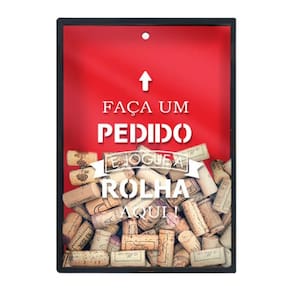 Texto ao fundo: faça um pedido e jogue a rolha aqui