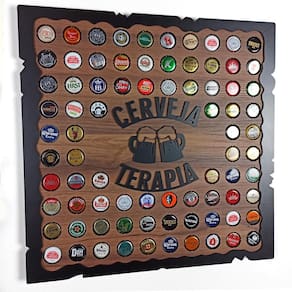 Quadro porta tampinhas decorativo para sala área de festas cantinho do churrasco - cervejaterapia cor nogal Aqui estão nossos novos quadros da linha rustic modelo 2021.