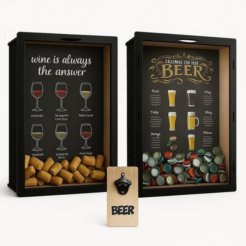 Quadro Porta Tampinhas + Quadro Porta Rolhas + Abridor