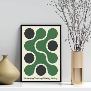Quadro poster bauhaus verde - ação 24x18cm Cor: moldura preta Informações do produto tire todas as suas dúvidas no descritivo abaixo: decoração para quarto, sala, cozinha, escritório, área gourmet e muito mais. Chega de paredes vazias medidas - cada peça tem 24x18cm a5 . Material do papel - papel fotográfico brilhante de altíssima resolução acabamento - todos os quadros são acompanhados de uma película de acetato para proteção da imagem. - os quadros são embalados de forma segura com plástico bolha com camada dupla de acordo com o tamanho dos quadros. - de 3 meses. Meu quadro chegou. Como posso fixá-lo Você precisa apenas de um martelo e um prego, pois os quadros já vão acompanhados de penduradores. Esta é a forma mais indicada. Caso prefira, você pode utilizar uma fita dupla face neste caso, sugerimos de alta qualidade para evitar que descole e seu quadro caia . Como posso limpar meu quadro A limpeza é feita como um móvel comum da sua casa. Apenas um pano seco ou espanador são suficientes para tal