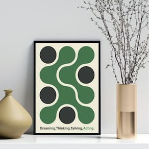 Quadro poster bauhaus verde - ação 45x34cm Cor: moldura branca Informações do produto tire todas as suas dúvidas no descritivo abaixo: decoração para quarto, sala, cozinha, escritório, área gourmet e muito mais. Chega de paredes vazias. Medidas - cada peça tem 45x34cm a3 . Material do papel - papel fotográfico brilhante de altíssima resolução acabamento - todos os quadros são acompanhados de uma película de acetato para proteção da imagem. - os quadros são embalados de forma segura com plástico bolha com camada dupla de acordo com o tamanho dos quadros. - de 3 meses. Meu quadro chegou. Como posso fixá-lo Você precisa apenas de um martelo e um prego, pois os quadros já vão acompanhados de penduradores. Esta é a forma mais indicada. Caso prefira, você pode utilizar uma fita dupla face neste caso, sugerimos de alta qualidade para evitar que descole e seu quadro caia . Como posso limpar meu quadro A limpeza é feita como um móvel comum da sua casa. Apenas um pano seco ou espanador são suficientes para tal