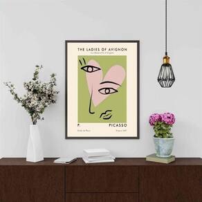 Quadro poster picasso verde - coração 24x18cm - com vidro Cor: moldura preta Informações do produto tire todas as suas dúvidas no descritivo abaixo: decoração para quarto, sala, cozinha, escritório, área gourmet e muito mais. Chega de paredes vazias medidas - cada peça tem 24x18cm a5 . Material do papel - papel fotográfico brilhante de altíssima resolução acabamento - todos os quadros são acompanhados de vidro para proteção da imagem. - moldura em madeira maciça na cor preta ou branca conforme produto escolhido e pendurador . - os quadros são embalados de forma segura com plástico bolha com camada dupla de acordo com o tamanho dos quadros. Garantia - garantia de 3 meses. Meu quadro chegou. Como posso fixá-lo Você precisa apenas de um martelo e um prego, pois os quadros já vão acompanhados de penduradores. Esta é a forma mais indicada. Como posso limpar meu quadro A limpeza é feita como um móvel comum da sua casa. Apenas um pano seco ou espanador são suficientes para tal Ean: 7891234552037