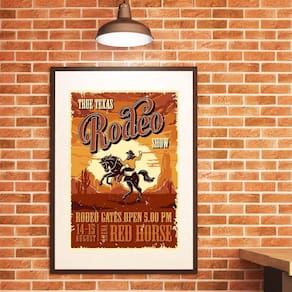 Quadro poster rodeio texas - 60x48cm Cor: moldura preta Informações do produto tire todas as suas dúvidas no descritivo abaixo: decoração para quarto, sala, cozinha, escritório, área gourmet e muito mais. Chega de paredes vazias medidas - cada peça tem 60x48cm . Material do papel - papel fotográfico brilhante de altíssima resolução acabamento - todos os quadros são acompanhados de vidro para proteção da imagem. - moldura em madeira maciça na cor preta ou branca conforme produto escolhido e pendurador. - paspatur branco com 7cm de largura - os quadros são embalados de forma segura com plástico bolha com camada dupla de acordo com o tamanho dos quadros. - de 3 meses. Meu quadro chegou. Como posso fixá-lo Você precisa apenas de um martelo e um prego, pois os quadros já vão acompanhados de penduradores. Esta é a forma mais indicada. Como posso limpar meu quadro A limpeza é feita como um móvel comum da sua casa. Apenas um pano seco ou espanador são suficientes para tal Marca: Não Informado Ean: 7891006256729