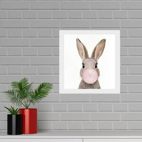 Quadro quadrado coelho chiclete - 33x33cm - com vidro Cor: moldura preta Informações do produto tire todas as suas dúvidas no descritivo abaixo: decoração para quarto, sala, cozinha, escritório, área gourmet e muito mais. Chega de paredes vazias medidas - cada peça tem 33x33cm. Material do papel - papel fotográfico brilhante de altíssima resolução acabamento - todos os quadros são acompanhados de vidro para proteção da imagem. - moldura em madeira maciça na cor preta ou branca conforme produto escolhido e pendurador . - os quadros são embalados de forma segura com plástico bolha com camada dupla de acordo com o tamanho dos quadros. - de 3 meses. Meu quadro chegou. Como posso fixá-lo Você precisa apenas de um martelo e um prego, pois os quadros já vão acompanhados de penduradores. Esta é a forma mais indicada. Como posso limpar meu quadro A limpeza é feita como um móvel comum da sua casa. Apenas um pano seco ou espanador são suficientes para tal Marca: Não Informado