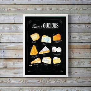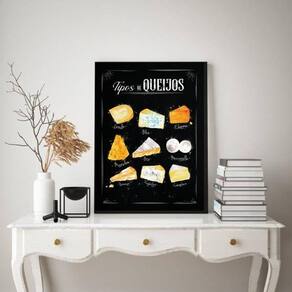 Quadro Queijo Decorativo 33x24cm - Vidro, Moldura Preta