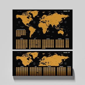 Raspe os países e pontos turísticos que você já visitou e transforme seu mapa em uma obra colorida à medida que você viaja. É a decoração que todo viajante precisa ter em casa