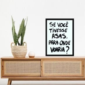 Quadro reflexão - se você tivesse asas 24x18cm - com vidro Moldura: madeira branca Informações do produto tire todas as suas dúvidas no descritivo abaixo: decoração para quarto, sala, cozinha, escritório, área gourmet e muito mais. Chega de paredes vazias medidas - cada peça tem 24x18cm a5 . Material do papel - papel fotográfico brilhante de altíssima resolução acabamento - todos os quadros são acompanhados de vidro para proteção da imagem. - moldura em madeira maciça na cor preta ou branca conforme produto escolhido e pendurador . - os quadros são embalados de forma segura com plástico bolha com camada dupla de acordo com o tamanho dos quadros. Garantia - garantia de 3 meses. Meu quadro chegou. Como posso fixá-lo Você precisa apenas de um martelo e um prego, pois os quadros já vão acompanhados de penduradores. Esta é a forma mais indicada. Como posso limpar meu quadro A limpeza é feita como um móvel comum da sua casa. Apenas um pano seco ou espanador são suficientes para tal