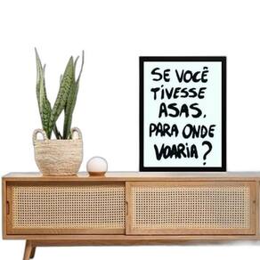 Quadro reflexão - se você tivesse asas 45x34cm Moldura: madeira branca Informações do produto tire todas as suas dúvidas no descritivo abaixo: decoração para quarto, sala, cozinha, escritório, área gourmet e muito mais. Chega de paredes vazias. Medidas - cada peça tem 45x34cm a3 . Material do papel - papel fotográfico brilhante de altíssima resolução acabamento - todos os quadros são acompanhados de uma película de acetato para proteção da imagem. - os quadros são embalados de forma segura com plástico bolha com camada dupla de acordo com o tamanho dos quadros. - de 3 meses. Meu quadro chegou. Como posso fixá-lo Você precisa apenas de um martelo e um prego, pois os quadros já vão acompanhados de penduradores. Esta é a forma mais indicada. Caso prefira, você pode utilizar uma fita dupla face neste caso, sugerimos de alta qualidade para evitar que descole e seu quadro caia . Como posso limpar meu quadro A limpeza é feita como um móvel comum da sua casa. Apenas um pano seco ou espanador são suficientes para tal Marca: Não Informado Ean: 7894853180858