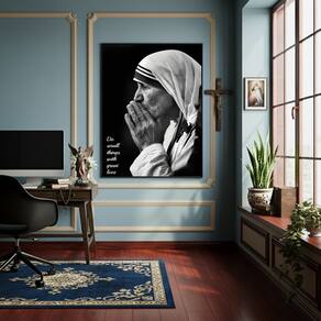 Quadro Retrato em Preto e Branco de Madre Teresa - 70x50cm - Cor: Moldura Branca