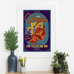 Quadro retrô cassino vegas - 60x48cm Cor: moldura branca Informações do produto tire todas as suas dúvidas no descritivo abaixo: decoração para quarto, sala, cozinha, escritório, área gourmet e muito mais. Chega de paredes vazias medidas - cada peça tem 60x48cm . Material do papel - papel fotográfico brilhante de altíssima resolução acabamento - todos os quadros são acompanhados de vidro para proteção da imagem. - moldura em madeira maciça na cor preta ou branca conforme produto escolhido e pendurador. - paspatur branco com 7cm de largura - os quadros são embalados de forma segura com plástico bolha com camada dupla de acordo com o tamanho dos quadros. Garantia - garantia de 3 meses. Meu quadro chegou. Como posso fixá-lo Você precisa apenas de um martelo e um prego, pois os quadros já vão acompanhados de penduradores. Esta é a forma mais indicada. Como posso limpar meu quadro A limpeza é feita como um móvel comum da sua casa. Apenas um pano seco ou espanador são suficientes para tal