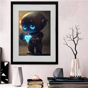 Quadro robozinho brilho da curiosidade 60x48cm Cor: moldura preta Informações do produto tire todas as suas dúvidas no descritivo abaixo: decoração para quarto, sala, cozinha, escritório, área gourmet e muito mais. Chega de paredes vazias medidas - cada peça tem 60x48cm . Material do papel - papel fotográfico brilhante de altíssima resolução acabamento - todos os quadros são acompanhados de vidro para proteção da imagem. - moldura em madeira maciça na cor preta ou branca conforme produto escolhido e pendurador. - paspatur branco com 7cm de largura - os quadros são embalados de forma segura com plástico bolha com camada dupla de acordo com o tamanho dos quadros. Garantia - garantia de 3 meses. Meu quadro chegou. Como posso fixá-lo Você precisa apenas de um martelo e um prego, pois os quadros já vão acompanhados de penduradores. Esta é a forma mais indicada. Como posso limpar meu quadro A limpeza é feita como um móvel comum da sua casa. Apenas um pano seco ou espanador são suficientes para tal