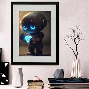 Quadro robozinho brilho da curiosidade 60x48cm Cor: moldura branca Informações do produto tire todas as suas dúvidas no descritivo abaixo: decoração para quarto, sala, cozinha, escritório, área gourmet e muito mais. Chega de paredes vazias medidas - cada peça tem 60x48cm . Material do papel - papel fotográfico brilhante de altíssima resolução acabamento - todos os quadros são acompanhados de vidro para proteção da imagem. - moldura em madeira maciça na cor preta ou branca conforme produto escolhido e pendurador. - paspatur branco com 7cm de largura - os quadros são embalados de forma segura com plástico bolha com camada dupla de acordo com o tamanho dos quadros. Garantia - garantia de 3 meses. Meu quadro chegou. Como posso fixá-lo Você precisa apenas de um martelo e um prego, pois os quadros já vão acompanhados de penduradores. Esta é a forma mais indicada. Como posso limpar meu quadro A limpeza é feita como um móvel comum da sua casa. Apenas um pano seco ou espanador são suficientes para tal
