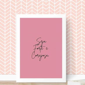 Especificações técnicas: - Título: Quadro Seja Forte E Corajosa- Rosa 24X18Cm - Medidas: 24x18cm A5 - Moldura: Madeira preta - Material do papel: Papel fotográfico brilhante de altíssima resolução - Acabamento: Película de acetato para proteção da imagem - Fixação: Acompanha penduradores para fixação na parede - Limpeza: Utilize um pano seco ou espanador