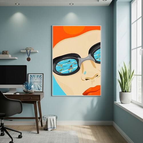 Quadro Rosto De Nadador 70x50cm Mold Branca