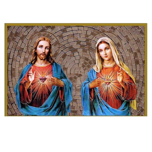 Belíssimo Quadro Sagrado Coração de Jesus e Maria com a Auréola Dourada dignificando ainda mais a imagem.