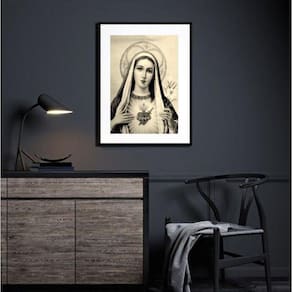 Quadro sagrado coração de maria preto e branco - 60x48cm Moldura: madeira preta Informações do produto tire todas as suas dúvidas no descritivo abaixo: decoração para quarto, sala, cozinha, escritório, área gourmet e muito mais. Chega de paredes vazias medidas - cada peça tem 60x48cm . Material do papel - papel fotográfico brilhante de altíssima resolução acabamento - todos os quadros são acompanhados de vidro para proteção da imagem. - moldura em madeira maciça na cor preta ou branca conforme produto escolhido e pendurador. - paspatur branco com 7cm de largura - os quadros são embalados de forma segura com plástico bolha com camada dupla de acordo com o tamanho dos quadros. Garantia - garantia de 3 meses. Meu quadro chegou. Como posso fixá-lo Você precisa apenas de um martelo e um prego, pois os quadros já vão acompanhados de penduradores. Esta é a forma mais indicada. Como posso limpar meu quadro A limpeza é feita como um móvel comum da sua casa. Apenas um pano seco ou espanador são suficientes para tal