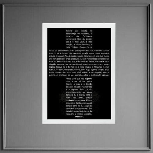 Quadro salmo 91 - cruz 45x34cm Moldura: madeira branca Informações do produto tire todas as suas dúvidas no descritivo abaixo: decoração para quarto, sala, cozinha, escritório, área gourmet e muito mais. Chega de paredes vazias. Medidas - cada peça tem 45x34cm a3 . Material do papel - papel fotográfico brilhante de altíssima resolução acabamento - todos os quadros são acompanhados de uma película de acetato para proteção da imagem. - os quadros são embalados de forma segura com plástico bolha com camada dupla de acordo com o tamanho dos quadros. - de 3 meses. Meu quadro chegou. Como posso fixá-lo Você precisa apenas de um martelo e um prego, pois os quadros já vão acompanhados de penduradores. Esta é a forma mais indicada. Caso prefira, você pode utilizar uma fita dupla face neste caso, sugerimos de alta qualidade para evitar que descole e seu quadro caia . Como posso limpar meu quadro A limpeza é feita como um móvel comum da sua casa. Apenas um pano seco ou espanador são suficientes para tal Marca: Não Informado Ean: 7896535954238