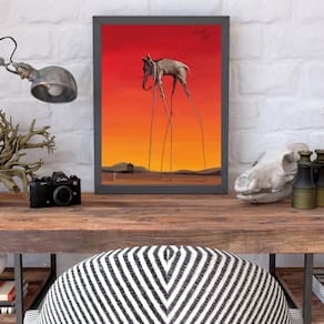 Quadro salvador dalí - elefante 24x18cm Moldura: madeira preta Informações do produto tire todas as suas dúvidas no descritivo abaixo: decoração para quarto, sala, cozinha, escritório, área gourmet e muito mais. Chega de paredes vazias medidas - cada peça tem 24x18cm a5 . Material do papel - papel fotográfico brilhante de altíssima resolução acabamento - todos os quadros são acompanhados de uma película de acetato para proteção da imagem. - os quadros são embalados de forma segura com plástico bolha com camada dupla de acordo com o tamanho dos quadros. Garantia - garantia de 3 meses. Meu quadro chegou. Como posso fixá-lo Você precisa apenas de um martelo e um prego, pois os quadros já vão acompanhados de penduradores. Esta é a forma mais indicada. Caso prefira, você pode utilizar uma fita dupla face neste caso, sugerimos de alta qualidade para evitar que descole e seu quadro caia . Como posso limpar meu quadro A limpeza é feita como um móvel comum da sua casa. Apenas um pano seco ou espanador são suficientes para tal