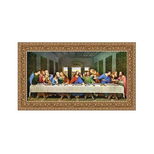 Quadro Santa Ceia Grande Com Vidro Moldura Clássica 114X64Cm