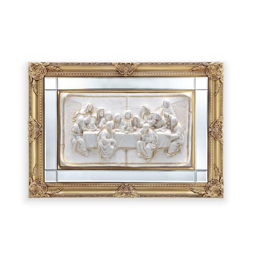 Quadro Santa Ceia com Espelho Marfim e Dourada - 93cm Luxo e Espiritualidade para Sua Decoração Enriqueça sua decoração com o Quadro Santa Ceia com Espelho Marfim e Dourada - 93cm, uma peça que une sofisticação, espiritualidade e um acabamento impecável. Com detalhes em dourado que proporcionam um brilho elegante e o toque refinado do tom marfim, este quadro conta com um espelho integrado que realça ainda mais sua beleza e presença. Ideal para ambientes amplos, ele é perfeito para celebrar a Páscoa ou destacar qualquer espaço com um ar de luxo e significado. Destaques do Produto: Acabamento Elegante em Marfim e Dourado: Combinação de cores sofisticadas que valorizam qualquer ambiente, transmitindo luxo e serenidade. Espelho Integrado: Um detalhe único que cria profundidade visual e dá um toque moderno à peça, tornando-a ainda mais especial. Alta Qualidade e Detalhes Artesanais: Fabricado em resina resistente e pintado à mão, com acabamento de alto padrão para garantir durabilidade e exclusividade. Tamanho Imponente: Com 93 cm de comprimento, é ideal para grandes espaços, sendo o centro das atenções em ambientes amplos. Símbolo de União e Fé: A representação clássica da Santa Ceia, um marco da espiritualidade cristã, transmite comunhão e devoção. Por que escolher este quadro O Quadro Santa Ceia com Espelho Marfim e Dourada - 93cm é a peça perfeita para consumidores que buscam uma combinação de arte sacra, sofisticação e modernidade. Para lojistas, é um produto diferenciado que atrai clientes exigentes e agrega valor ao portfólio. Aplicações: Decoração Religiosa e Festiva: Ideal para Páscoa, celebrações cristãs e decoração permanente de espaços devocionais. Ambientes Amplos e Elegantes: Perfeito para igrejas, capelas, salões de eventos ou residências de alto padrão. Presente Exclusivo e Marcante: Uma escolha especial para presentear amigos e familiares que valorizam fé e estilo. Venda para Revendedores: Produto de alta demanda e excelente oportunidade de lucro, especialmente em datas comemorativas. Transforme sua decoração com o Quadro Santa Ceia com Espelho Marfim e Dourada - 93cm, uma peça que une tradição, beleza e sofisticação, tornando qualquer ambiente ainda mais especial.