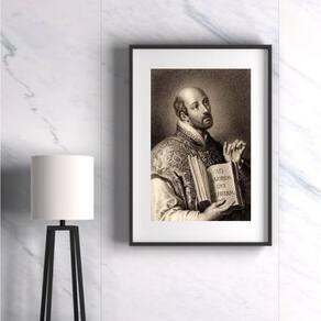 Quadro santo inácio de loyola - 60x48cm Moldura: madeira branca Informações do produto tire todas as suas dúvidas no descritivo abaixo: decoração para quarto, sala, cozinha, escritório, área gourmet e muito mais. Chega de paredes vazias medidas - cada peça tem 60x48cm . Material do papel - papel fotográfico brilhante de altíssima resolução acabamento - todos os quadros são acompanhados de vidro para proteção da imagem. - moldura em madeira maciça na cor preta ou branca conforme produto escolhido e pendurador. - paspatur branco com 7cm de largura - os quadros são embalados de forma segura com plástico bolha com camada dupla de acordo com o tamanho dos quadros. - de 3 meses. Meu quadro chegou. Como posso fixá-lo Você precisa apenas de um martelo e um prego, pois os quadros já vão acompanhados de penduradores. Esta é a forma mais indicada. Como posso limpar meu quadro A limpeza é feita como um móvel comum da sua casa. Apenas um pano seco ou espanador são suficientes para tal Marca: Não Informado