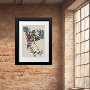 Quadro são miguel arcanjo abstrato- 60x48cm Cor: moldura branca Informações do produto tire todas as suas dúvidas no descritivo abaixo: decoração para quarto, sala, cozinha, escritório, área gourmet e muito mais. Chega de paredes vazias medidas - cada peça tem 60x48cm . Material do papel - papel fotográfico brilhante de altíssima resolução acabamento - todos os quadros são acompanhados de vidro para proteção da imagem. - moldura em madeira maciça na cor preta ou branca conforme produto escolhido e pendurador. - paspatur branco com 7cm de largura - os quadros são embalados de forma segura com plástico bolha com camada dupla de acordo com o tamanho dos quadros. - de 3 meses. Meu quadro chegou. Como posso fixá-lo Você precisa apenas de um martelo e um prego, pois os quadros já vão acompanhados de penduradores. Esta é a forma mais indicada. Como posso limpar meu quadro A limpeza é feita como um móvel comum da sua casa. Apenas um pano seco ou espanador são suficientes para tal