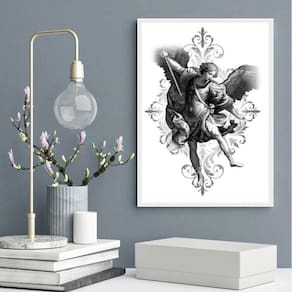 Quadro são miguel arcanjo preto e branco 33x24cm - com vidro Moldura: madeira branca Informações do produto tire todas as suas dúvidas no descritivo abaixo: decoração para quarto, sala, cozinha, escritório, área gourmet e muito mais. Chega de paredes vazias medidas - cada peça tem 33x24cm a4 . Material do papel - papel fotográfico brilhante de altíssima resolução acabamento - todos os quadros são acompanhados de vidro para proteção da imagem. - moldura em madeira maciça na cor preta ou branca conforme produto escolhido e pendurador . - os quadros são embalados de forma segura com plástico bolha com camada dupla de acordo com o tamanho dos quadros. Garantia - garantia de 3 meses. Meu quadro chegou. Como posso fixá-lo Você precisa apenas de um martelo e um prego, pois os quadros já vão acompanhados de penduradores. Esta é a forma mais indicada. Como posso limpar meu quadro A limpeza é feita como um móvel comum da sua casa. Apenas um pano seco ou espanador são suficientes para tal