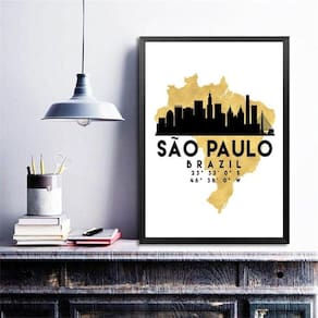 Quadro são paulo brazil - escala 33x24cm - com vidro Moldura: madeira branca Informações do produto tire todas as suas dúvidas no descritivo abaixo: decoração para quarto, sala, cozinha, escritório, área gourmet e muito mais. Chega de paredes vazias medidas - cada peça tem 33x24cm a4 . Material do papel - papel fotográfico brilhante de altíssima resolução acabamento - todos os quadros são acompanhados de vidro para proteção da imagem. - moldura em madeira maciça na cor preta ou branca conforme produto escolhido e pendurador . - os quadros são embalados de forma segura com plástico bolha com camada dupla de acordo com o tamanho dos quadros. Garantia - garantia de 3 meses. Meu quadro chegou. Como posso fixá-lo Você precisa apenas de um martelo e um prego, pois os quadros já vão acompanhados de penduradores. Esta é a forma mais indicada. Como posso limpar meu quadro A limpeza é feita como um móvel comum da sua casa. Apenas um pano seco ou espanador são suficientes para tal