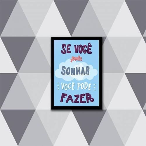 Quadro se você pode sonhar, você pode fazer 33x24cm - com vidro Moldura: madeira preta Informações do produto tire todas as suas dúvidas no descritivo abaixo: decoração para quarto, sala, cozinha, escritório, área gourmet e muito mais. Chega de paredes vazias medidas - cada peça tem 33x24cm a4 . Material do papel - papel fotográfico brilhante de altíssima resolução acabamento - todos os quadros são acompanhados de vidro para proteção da imagem. - moldura em madeira maciça na cor preta e pendurador . - os quadros são embalados de forma segura com plástico bolha com camada dupla de acordo com o tamanho dos quadros. - de 3 meses. Meu quadro chegou. Como posso fixá-lo Você precisa apenas de um martelo e um prego, pois os quadros já vão acompanhados de penduradores. Esta é a forma mais indicada. Como posso limpar meu quadro A limpeza é feita como um móvel comum da sua casa. Apenas um pano seco ou espanador são suficientes para tal