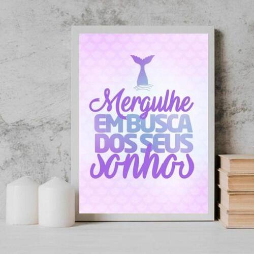 Quadro sereia busque seus sonhos 24x18cm Moldura: madeira branca Informações do produto tire todas as suas dúvidas no descritivo abaixo: decoração para quarto, sala, cozinha, escritório, área gourmet e muito mais. Chega de paredes vazias medidas - cada peça tem 24x18cm a5 . Material do papel - papel fotográfico brilhante de altíssima resolução acabamento - todos os quadros são acompanhados de uma película de acetato para proteção da imagem. - moldura em madeira maciça na cor preta e pendurador móvel que pode ser retirado facilmente caso deseje fixar com fita dupla face. - os quadros são embalados de forma segura com plástico bolha com camada dupla de acordo com o tamanho dos quadros. Garantia - garantia de 3 meses. Meu quadro chegou. Como posso fixá-lo Você precisa apenas de um martelo e um prego, pois os quadros já vão acompanhados de penduradores. Esta é a forma mais indicada. Caso prefira, você pode utilizar uma fita dupla face neste caso, sugerimos de alta qualidade para evitar que descole e seu quadro caia . Como posso limpar meu quadro A limpeza é feita como um móvel comum da sua casa. Apenas um pano seco ou espanador são suficientes para tal