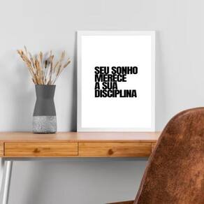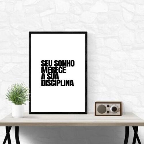 Quadro seu sonho merece sua disciplina 24x18cm Cor: moldura branca Informações do produto tire todas as suas dúvidas no descritivo abaixo: decoração para quarto, sala, cozinha, escritório, área gourmet e muito mais. Chega de paredes vazias medidas - cada peça tem 24x18cm a5 . Material do papel - papel fotográfico brilhante de altíssima resolução acabamento - todos os quadros são acompanhados de uma película de acetato para proteção da imagem. - os quadros são embalados de forma segura com plástico bolha com camada dupla de acordo com o tamanho dos quadros. Garantia - garantia de 3 meses. Meu quadro chegou. Como posso fixá-lo Você precisa apenas de um martelo e um prego, pois os quadros já vão acompanhados de penduradores. Esta é a forma mais indicada. Caso prefira, você pode utilizar uma fita dupla face neste caso, sugerimos de alta qualidade para evitar que descole e seu quadro caia . Como posso limpar meu quadro A limpeza é feita como um móvel comum da sua casa. Apenas um pano seco ou espanador são suficientes para tal