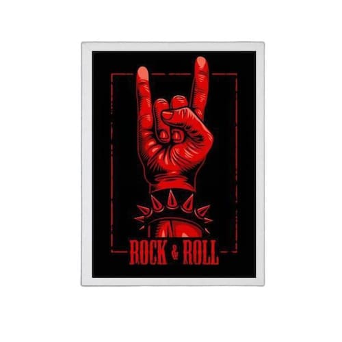 Quadro símbolo mão do rock roll 33x24cm Moldura: madeira branca Informações do produto tire todas as suas dúvidas no descritivo abaixo: decoração para quarto, sala, cozinha, escritório, área gourmet e muito mais. Chega de paredes vazias medidas - cada peça tem 33x24cm a4 . Material do papel - papel fotográfico brilhante de altíssima resolução acabamento - todos os quadros são acompanhados de uma película de acetato para proteção da imagem. - moldura em madeira maciça na cor preta e pendurador móvel que pode ser retirado facilmente caso deseje fixar com fita dupla face. - os quadros são embalados de forma segura com plástico bolha com camada dupla de acordo com o tamanho dos quadros. Ean: 7892090540503