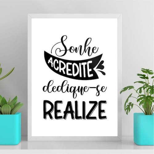 Quadro sonhe acredite dedique-se realize 33x24cm - com vidro Moldura: madeira branca Informações do produto tire todas as suas dúvidas no descritivo abaixo: decoração para quarto, sala, cozinha, escritório, área gourmet e muito mais. Chega de paredes vazias medidas - cada peça tem 33x24cm a4 . Material do papel - papel fotográfico brilhante de altíssima resolução acabamento - todos os quadros são acompanhados de vidro para proteção da imagem. - moldura em madeira maciça na cor preta ou branca conforme produto escolhido e pendurador . - os quadros são embalados de forma segura com plástico bolha com camada dupla de acordo com o tamanho dos quadros. Garantia - garantia de 3 meses. Meu quadro chegou. Como posso fixá-lo Você precisa apenas de um martelo e um prego, pois os quadros já vão acompanhados de penduradores. Esta é a forma mais indicada. Como posso limpar meu quadro A limpeza é feita como um móvel comum da sua casa. Apenas um pano seco ou espanador são suficientes para tal