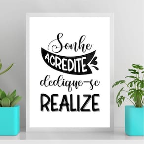Quadro sonhe acredite dedique-se realize 33x24cm - com vidro Moldura: madeira preta Informações do produto tire todas as suas dúvidas no descritivo abaixo: decoração para quarto, sala, cozinha, escritório, área gourmet e muito mais. Chega de paredes vazias medidas - cada peça tem 33x24cm a4 . Material do papel - papel fotográfico brilhante de altíssima resolução acabamento - todos os quadros são acompanhados de vidro para proteção da imagem. - moldura em madeira maciça na cor preta ou branca conforme produto escolhido e pendurador . - os quadros são embalados de forma segura com plástico bolha com camada dupla de acordo com o tamanho dos quadros. Garantia - garantia de 3 meses. Meu quadro chegou. Como posso fixá-lo Você precisa apenas de um martelo e um prego, pois os quadros já vão acompanhados de penduradores. Esta é a forma mais indicada. Como posso limpar meu quadro A limpeza é feita como um móvel comum da sua casa. Apenas um pano seco ou espanador são suficientes para tal