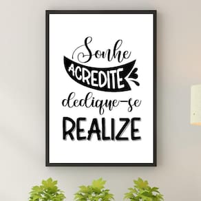 Quadro sonhe acredite dedique-se realize 45x34cm Moldura: madeira preta Informações do produto tire todas as suas dúvidas no descritivo abaixo: decoração para quarto, sala, cozinha, escritório, área gourmet e muito mais. Chega de paredes vazias. Medidas - cada peça tem 45x34cm a3 . Material do papel - papel fotográfico brilhante de altíssima resolução acabamento - todos os quadros são acompanhados de uma película de acetato para proteção da imagem. - os quadros são embalados de forma segura com plástico bolha com camada dupla de acordo com o tamanho dos quadros. Garantia - garantia de 3 meses. Meu quadro chegou. Como posso fixá-lo Você precisa apenas de um martelo e um prego, pois os quadros já vão acompanhados de penduradores. Esta é a forma mais indicada. Caso prefira, você pode utilizar uma fita dupla face neste caso, sugerimos de alta qualidade para evitar que descole e seu quadro caia . Como posso limpar meu quadro A limpeza é feita como um móvel comum da sua casa. Apenas um pano seco ou espanador são suficientes para tal