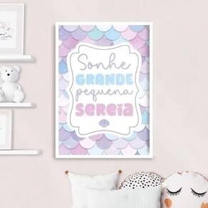 Quadro sonhe grande pequena sereia 24x18cm - com vidro Cor: moldura branca Informações do produto tire todas as suas dúvidas no descritivo abaixo: decoração para quarto, sala, cozinha, escritório, área gourmet e muito mais. Chega de paredes vazias medidas - cada peça tem 24x18cm a5 . Material do papel - papel fotográfico brilhante de altíssima resolução acabamento - todos os quadros são acompanhados de vidro para proteção da imagem. - moldura em madeira maciça na cor preta ou branca conforme produto escolhido e pendurador . - os quadros são embalados de forma segura com plástico bolha com camada dupla de acordo com o tamanho dos quadros. - de 3 meses. Meu quadro chegou. Como posso fixá-lo Você precisa apenas de um martelo e um prego, pois os quadros já vão acompanhados de penduradores. Esta é a forma mais indicada. Como posso limpar meu quadro A limpeza é feita como um móvel comum da sua casa. Apenas um pano seco ou espanador são suficientes para tal Marca: Não Informado Ean: 7897701731806