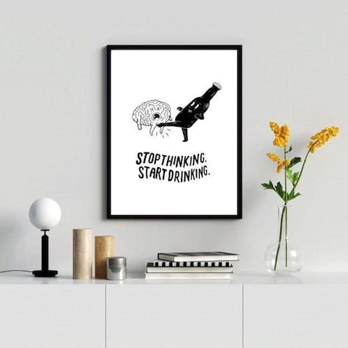 O Quadro Decorativo Stop Thinking Start Drinking é perfeito para decorar qualquer ambiente da sua casa ou escritório. Com medidas de 45x34cm A3 , ele se encaixa perfeitamente em paredes vazias, trazendo um toque de personalidade e estilo.