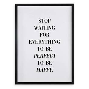 Quadro stop waiting to be happy 33x24cm - com vidro Cor: moldura preta Informações do produto tire todas as suas dúvidas no descritivo abaixo: decoração para quarto, sala, cozinha, escritório, área gourmet e muito mais. Chega de paredes vazias medidas - cada peça tem 33x24cm a4 . Material do papel - papel fotográfico brilhante de altíssima resolução acabamento - todos os quadros são acompanhados de vidro para proteção da imagem. - moldura em madeira maciça na cor preta ou branca conforme produto escolhido e pendurador . - os quadros são embalados de forma segura com plástico bolha com camada dupla de acordo com o tamanho dos quadros. - de 3 meses. Meu quadro chegou. Como posso fixá-lo Você precisa apenas de um martelo e um prego, pois os quadros já vão acompanhados de penduradores. Esta é a forma mais indicada. Como posso limpar meu quadro A limpeza é feita como um móvel comum da sua casa. Apenas um pano seco ou espanador são suficientes para tal Marca: Não Informado