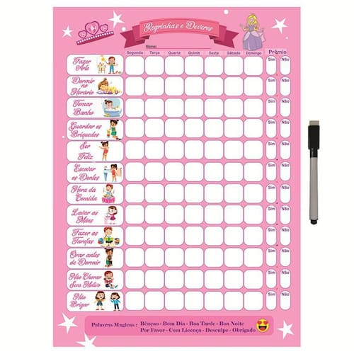 Contém: 1 Quadro do incentivo 40x29cm 1 Caneta para quadro branco com apagador e imã na tampa Ean: 7891562991942
